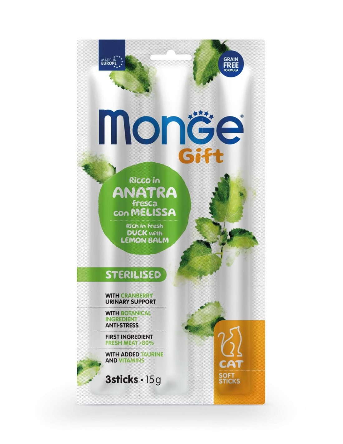 Monge Gift Soft Sticks Pato con Limón para Gatos Esterilizados Exigentes