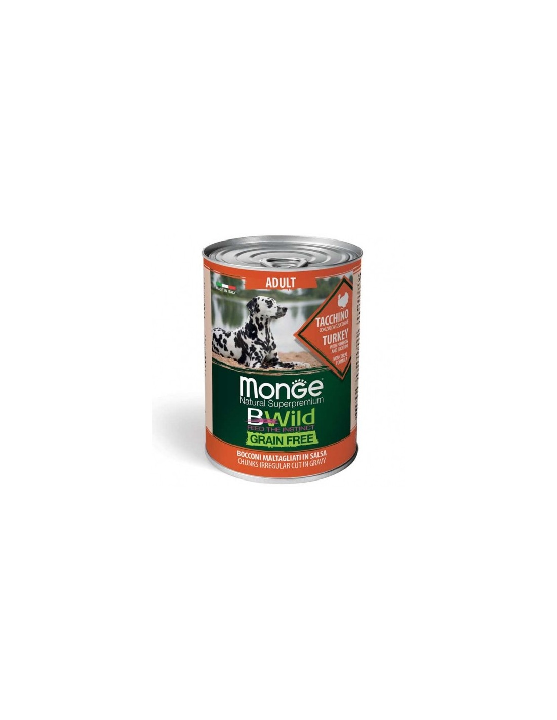 Excelente comida para cuidar a tu mascota. Monge Natural Super Premium Bwild Grain Free Formula All Breeds Perro Adulto que contiene pavo con calabaza y calabacín es un alimento completo y equilibrado para perros adultos. Formulado pensando en el bienestar de perros de todos los tamaños, gracias a la selección de fuentes alternativas de hidratos de carbono no derivados de los cereales, como el calabacín y la calabaza. La receta está enriquecida con la última generación de xilo-oligosacáridos prebióticos (XOS) para apoyar el bienestar intestinal. La formulación apoya las articulaciones, gracias a la inclusión de glucosamina y sulfato de condroitina. Apto para perros de todos los tamaños.