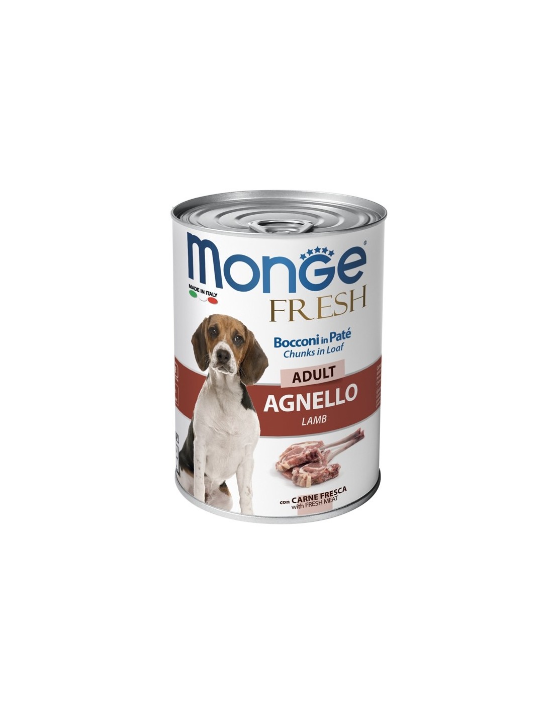 Monge Perro Paté Fresco Pollo Monge Fresh Cane Adult bocados en paté de cordero un alimento completo y equilibrado para perros adultos. El procesamiento al vapor caliente de la carne fresca de pollo garantiza una alta digestibilidad, así como el alto valor biológico de la receta.