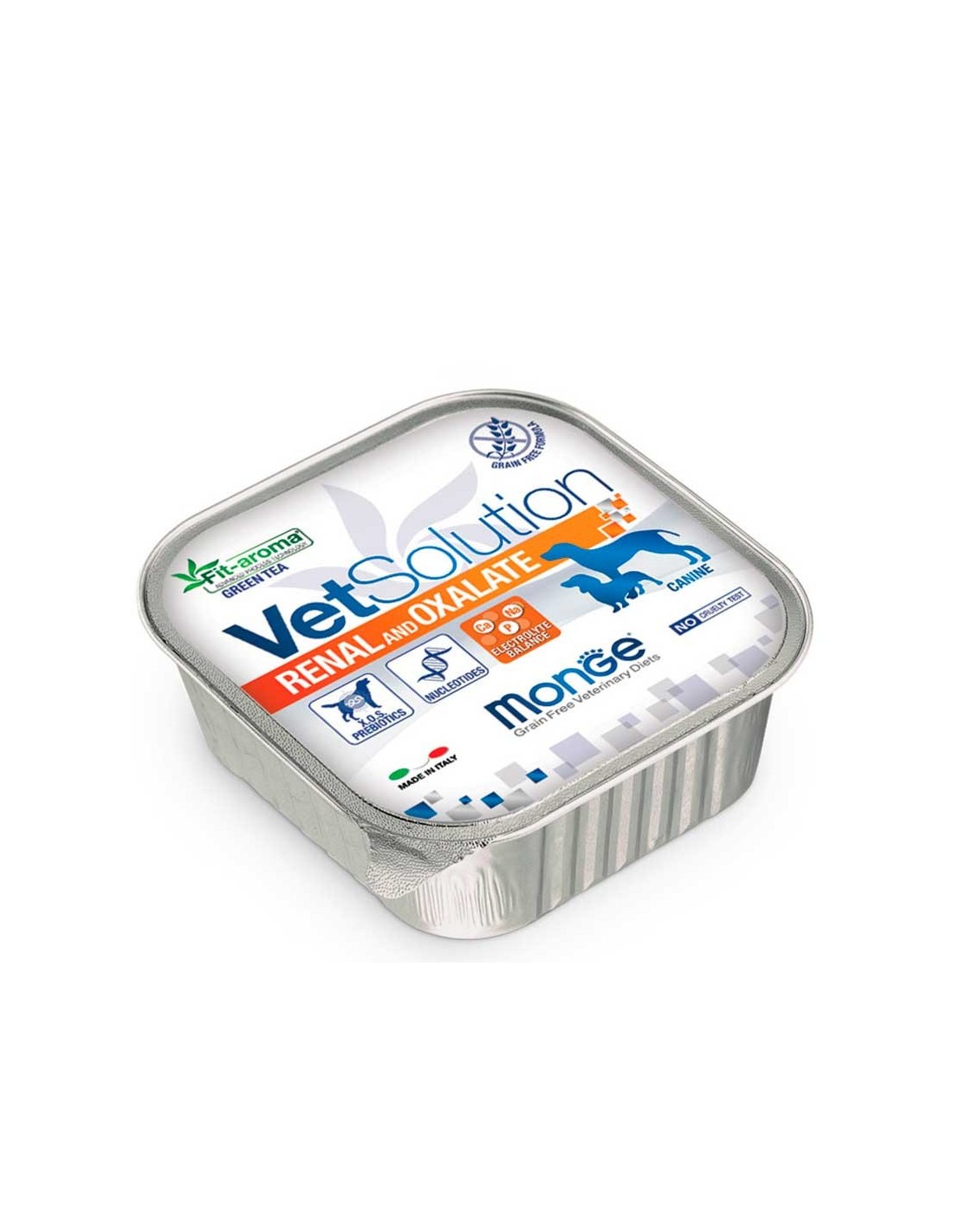 Exquisitas Tarrinas de Paté para cuidar a tu Perro con problemas Renales. Monge VetSolution RENAL Y OXALATO CANINO es un alimento dietético completo para perros, formulado para el apoyo de la función renal en caso de insuficiencia renal crónica o temporal.